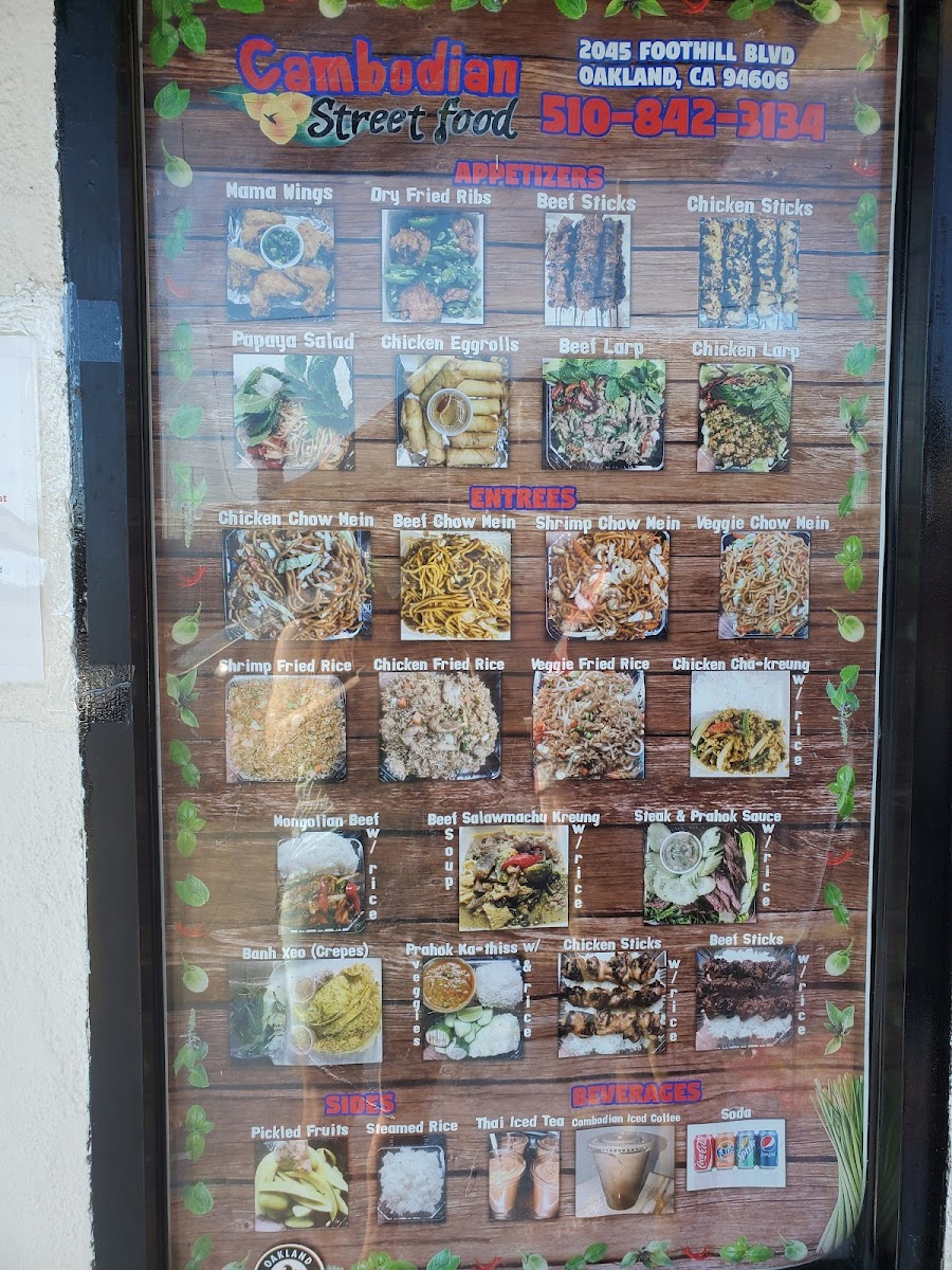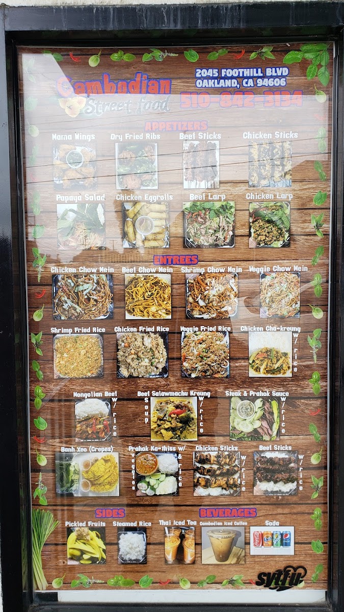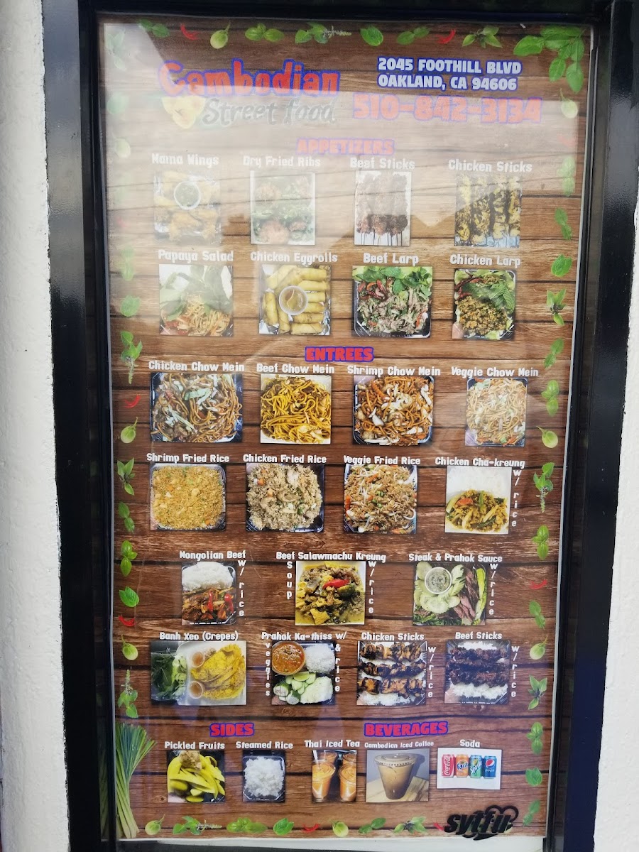 Step into a world of vibrant flavors with the Cambodian Street Food Menu at 2045 Foothill Blvd, Oakland. From the first bite, you’ll experience the bold and diverse tastes that define Cambodia’s rich culinary heritage. Expect to savor everything from savory soups and skewers to freshly prepared rice and noodle dishes, each packed with a perfect balance of spices, herbs, and seasonings. Whether you’re craving something crispy and fried or a warm, hearty dish, there’s something for everyone. The menu features traditional favorites that transport your taste buds straight to the bustling streets of Phnom Penh. It's a place where every meal tells a story, and every dish is a new adventure in flavor.
